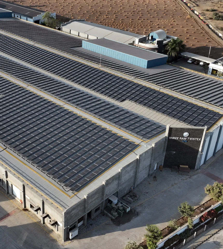 At Shree Ram Twistex Limited, sustainability is at the heart of our operations. We currently harness 1.2 MW of solar power through our existing rooftop solar plant. As part of our commitment to a greener future, we are expanding our solar infrastructure by adding an additional 6.2 MW rooftop solar plant. This significant expansion will enable us to transition to 100% renewable energy, reducing our carbon footprint while ensuring energy efficiency and environmental responsibility in our manufacturing processes.